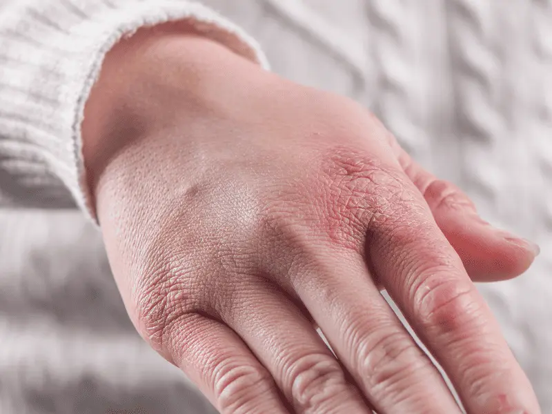 - Alterações na cor da pele, que se torna avermelhada, arroxeada ou azulada;
